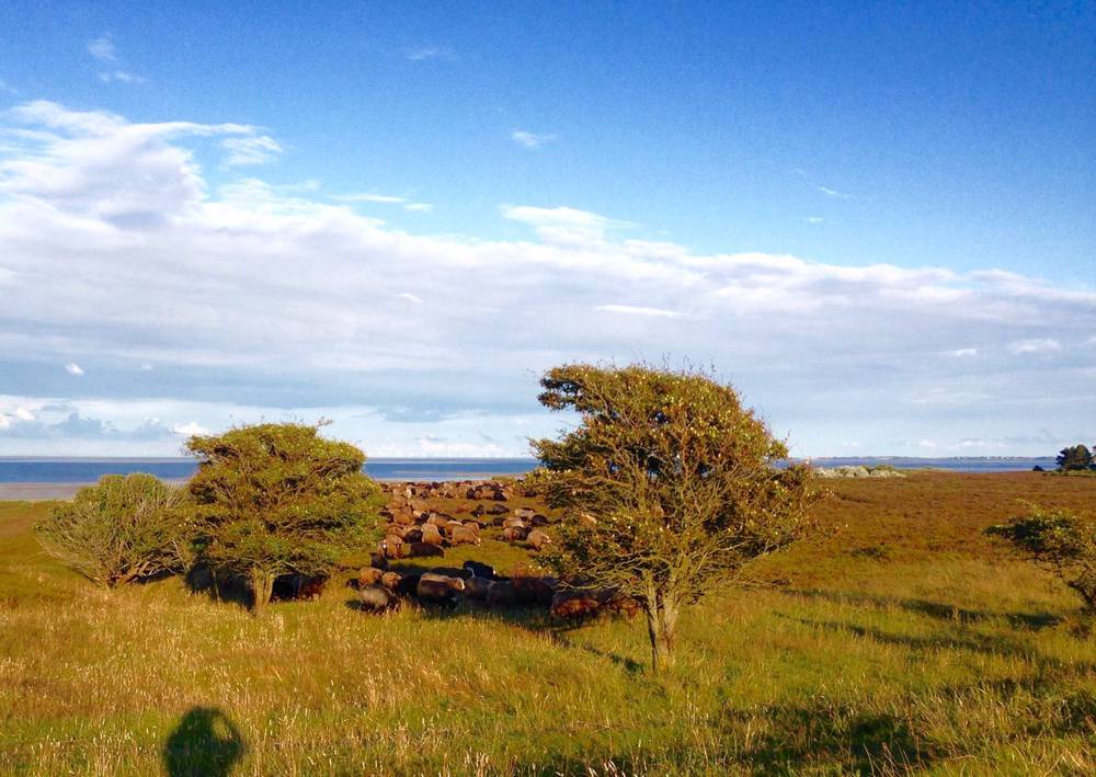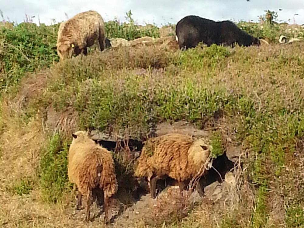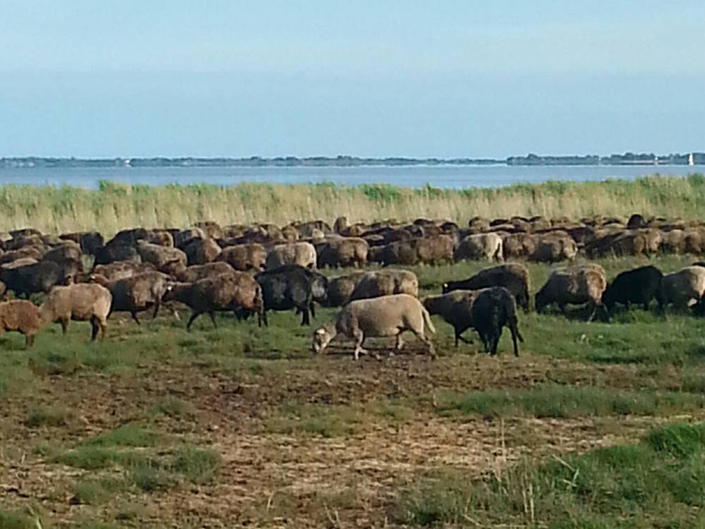 Natürlich ist nicht alles so idyllisch wie bisher beschrieben. Regen und Sturm können sowohl Mensch als auch Tier die Stimmung versauen. Und mit dem Wetter auf der Insel ist nicht zu scherzen, das erkenne ich sehr schnell. Während einer „Schicht“ zieh ich mir mehrmals Jacke und Pulli an und wieder aus. Notfall-Gummistiefel schleppe ich sicherheitshalber mit mir rum, und wenn der Himmel sich verdunkelt und die Schafe sich zusammenrotten, dann kann ich schon mal in die Regentracht schlüpfen.