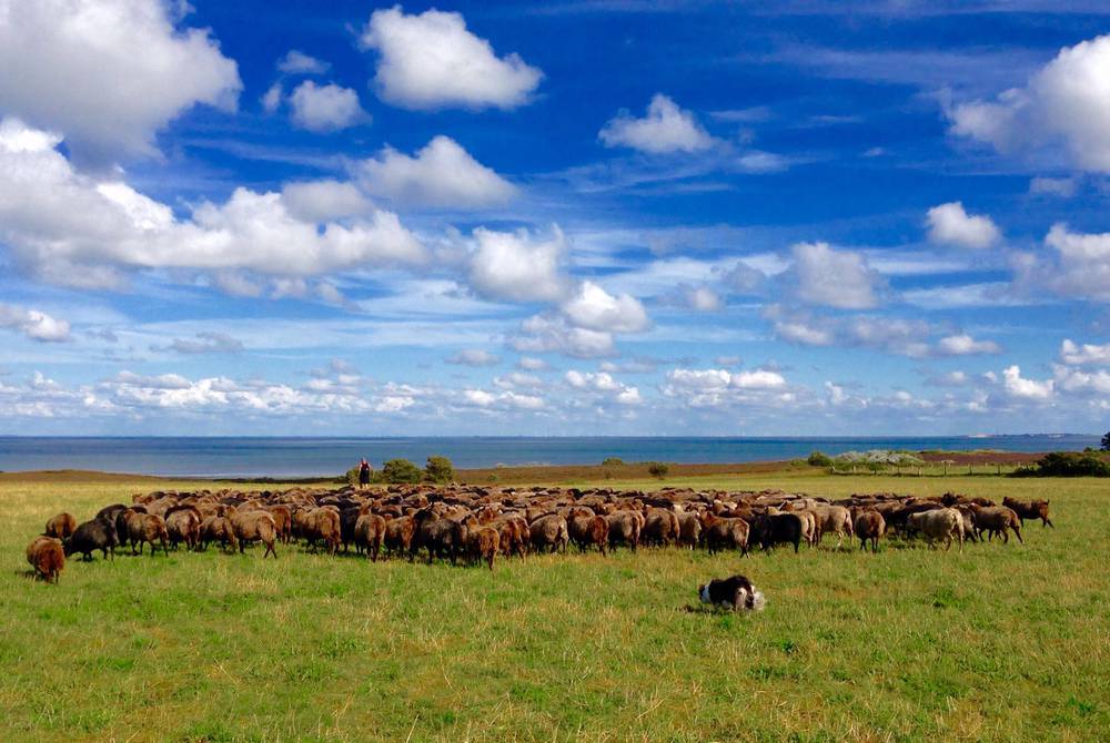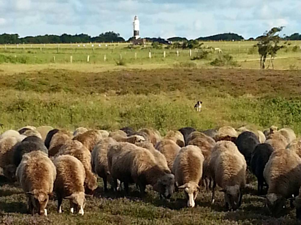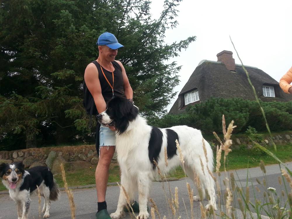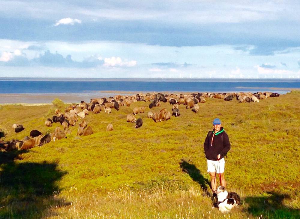 Sylt - ein Abenteuerurlaub (2016)Ab einem gewissen Alter stellt sich ja die Frage nach Dingen, die ein Mann unbedingt getan haben sollte. Ein solches bot sich mir im Sommer 2016 förmlich an. Eine Bekannte betreibt mit ihrer Schafherde Landschaftspflege auf Deutschlands nördlichster Insel und suchte über Facebook eine Urlaubsvertretung für ihren Schäfer. Ziemlich spontan und ohne wirklich nachzudenken witterte ich die einmalige Chance auf ein Abenteuer und gleichzeitig einen Urlaub für die Familie. Ein Anruf und schnell war klar, HAUSENS machen Urlaub auf Sylt und Kai hütet 500 Schafe. Vorfreude verdrängte erstmal jeden Zweifel. Je näher der "Urlaub" aber kam, desto mehr schob ich Panik. Selbstzweifel und Nervosität stellten sich ein. Würde ich das schaffen? Würden meine Hunde das schaffen? Welche Hunde nehme ich mit? Wie macht man das mit 500!!! Schafen? Das größte, was meine Hunde mal vor der Nase hatten, waren 200. Egal, es gab kein Zurück mehr. Ilka und die Kinder freuten sich, und so musste ich nun durch. Für einen Rückzieher war ich mir auch zu stolz. Ende Juli ging es frühmorgens mit dem stramm gepackten Pick Up in Richtung Norden. Niebüll war das Ziel. Im Gepäck Ilka, Jan und Lenya (Nick hatte keine Lust auf Familienurlaub) und die Vierbeiner Kerry, Moon, Pina und Klein Tilda (eher der Form halber) und natürlich Bisquit als moralische Unterstützung. Logistisch natürlich eine Glanzleistung erreichten wir aber doch am frühen Mittag den Autozug in Niebüll, der uns ziemlich zügig nach Westerland schaffte. Nach Sichtung der Residenz machten wir uns auf die kurze Suche nach der Schafherde und der Chefin, die mich noch einweisen sollte. Man fand sich und die Freude war beidseits groß. Insgeheim aber ließ ich schon mal die „große Herde“ auf mich wirken. Vor der Arbeit gings erstmal Fisch futtern bei Gosch. Und schon zeichnete sich ab, auf welch elitärem Pflaster ich die nächsten Tage weiden sollte. Gut gestärkt und nachdem alles Gepäck verstaut war, gings mit Chefin Uta Wree, ihrem Sohn Finn, ihren Hunden und meiner Kerry erstmals an die Herde. Ruhig erklärte mir Uta, worauf ich zu achten hätte. Die 503 (aha) Damen der Rasse Norsk Spelsau hören auf einen Lockruf, ich versuchte, mir diesen zu merken. Der Hund sollte eher ruhig arbeiten (na prima, Kerrys Stärke...) und sich gut positionieren. Nicht zu viel schieben und die Herde nicht beunruhigen. OK! Soweit, so gut. Einsatzgebiet war die Braderuper Heide, die in prächtig lilafarbener Blüte stand. Gelegen an der Wattseite der Insel zwischen Braderup und Kampen. Traumschön. Also wirklich traumhaft schön, die Kulisse für mein Abenteuer hätte nicht besser gewählt sein können. Aufgabe meiner 503 Arbeiterinnen war der Verbiss der Heide und vor allem das Wegfuttern von allem grasartigen Aufwuchs und der Kartoffelrose. Letztere breitet sich rasant auf der Insel aus und wuchert die Heide zu, wird aber von den Schafen wirklich sehr geschätzt und scheint zu schmecken. Ich versuchte mir alles zu merken. Nach abendlichem Kabarett-Ausflug gings morgens beizeiten nochmal mit Uta los. Abermals versuchte ich mir alles zu merken und hatte aber doch Schwierigkeiten, meiner stürmischen Kerry zu vertrauen. Die Schafe aber waren wirklich brav und schienen das Spiel zu kennen. Ich fühlte mich gut gerüstet mit allen nötigen Infos, war aber immer noch nervös. Die Mittagspause wurde zum Strandausflug genutzt. Hundestrand in Rantum. Traumhaft schön wieder, aber ein Erlebnis, wenn man feststellen muss, dass die Vierbeiner genau jetzt läufig geworden sind. Mmmpf! Naja… man wächst ja an seinen Aufgaben. Und in der Tat, ich sollte daran wachsen. Uta und Finn verließen uns nach dem Strandbesuch, und ich war nun allein mit Utas Schafen und meinen Hunden. Natürlich mit familiärer Unterstützung, aber doch eigenverantwortlich für die Ladies und die Heide. Keine Zeit mehr für Selbstzweifel.
