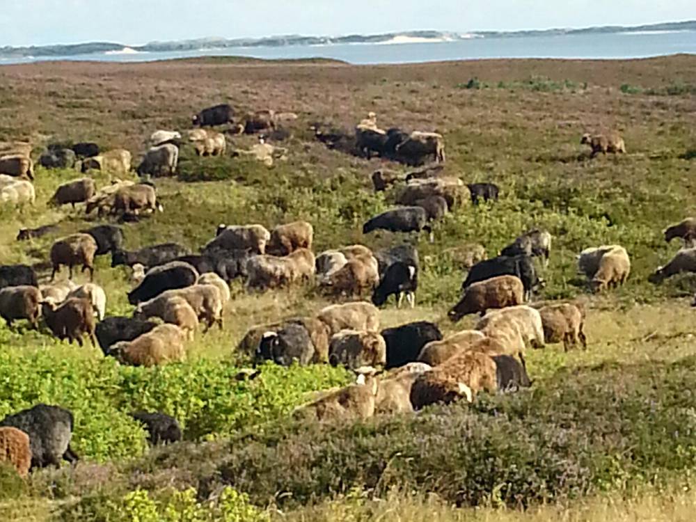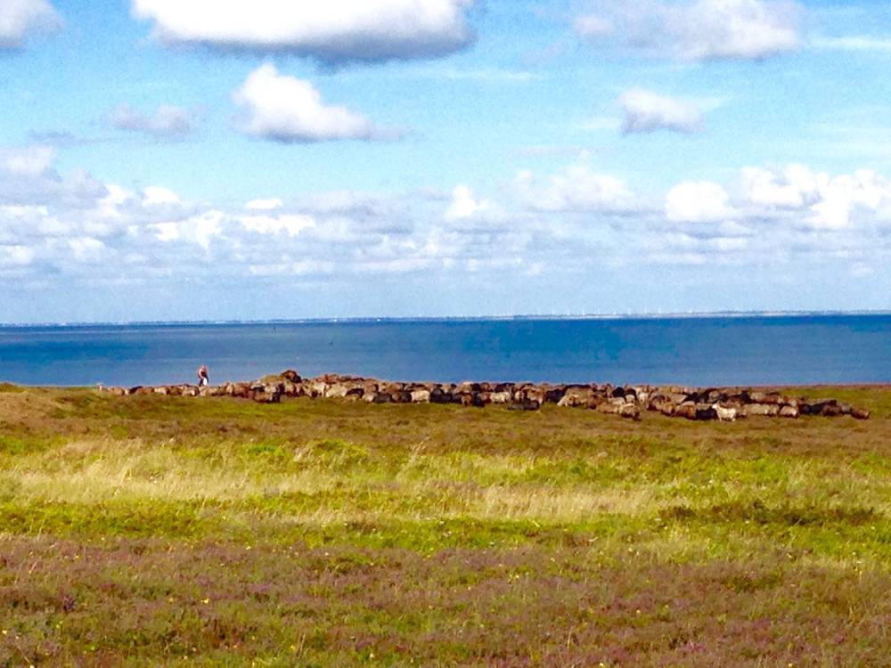Aber die Schafe haben eine Eigendynamik. Meist nach einer halben Stunde scheint den ersten die aktuelle Menükarte nicht mehr zu gefallen, und es gelüstet die Damen nach einer anderen Option. Ich ziehe also ruhig weiter und ziele auf eine Rosenhecke. Sie fallen drüber her wie die Heuschrecken. Faszinierend! Danach nochmal Gras oder Strandhafer, zwischendurch wieder Heidekraut und noch die ein oder andere Rose. Ich glaube, ich verstehe wie sie ticken. Nach dreieinhalb Stunden wirken die Damen recht zufrieden und satt und gaaaanz langsam ziehe ich mit den Ladies in den Nachtpferch. Auch das klappt hervorragend. 503 Schafe schlendern ruhig in den Pferch, zwei müde Collies formen die Herde zu einem langen Schlauch. It works!!! Ich freue mich.